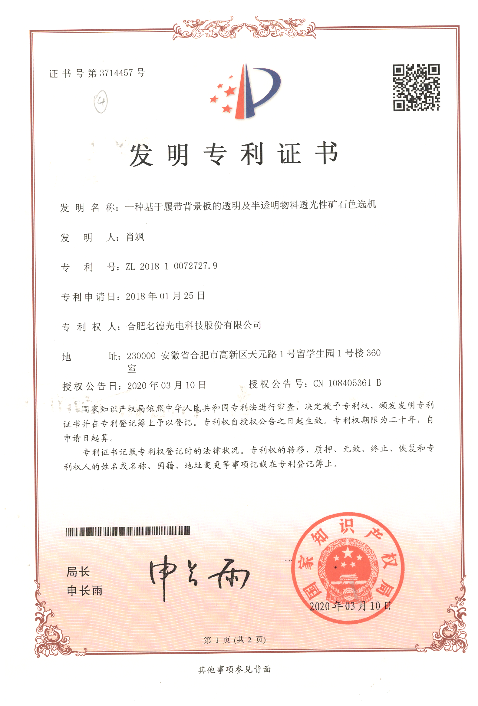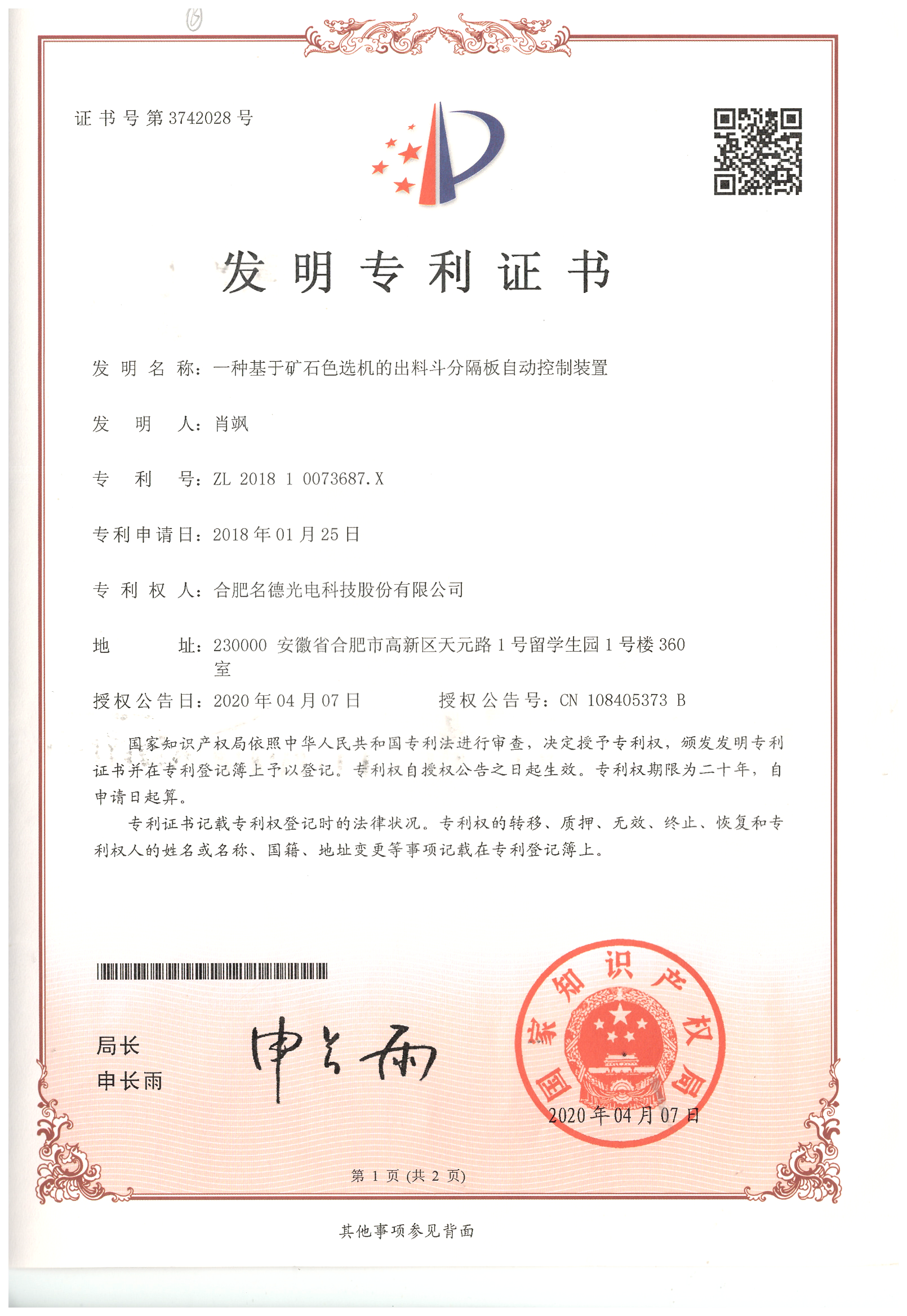 名德光電擁有一支完備的技術(shù)研發(fā)團(tuán)隊(duì),專業(yè)涉及光電技術(shù)、人工智能、智能機(jī)器人、機(jī)械設(shè)計(jì)、自動(dòng)化、軟件、數(shù)據(jù)分析等領(lǐng)域。目前公司在人工智能、大數(shù)據(jù)、選礦等領(lǐng)域取得具有自主知識產(chǎn)權(quán)的核心專利技術(shù)。