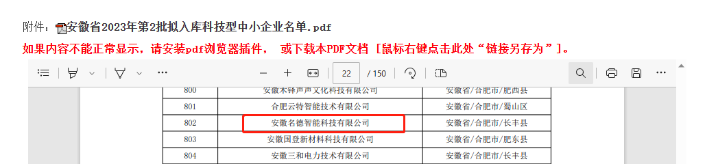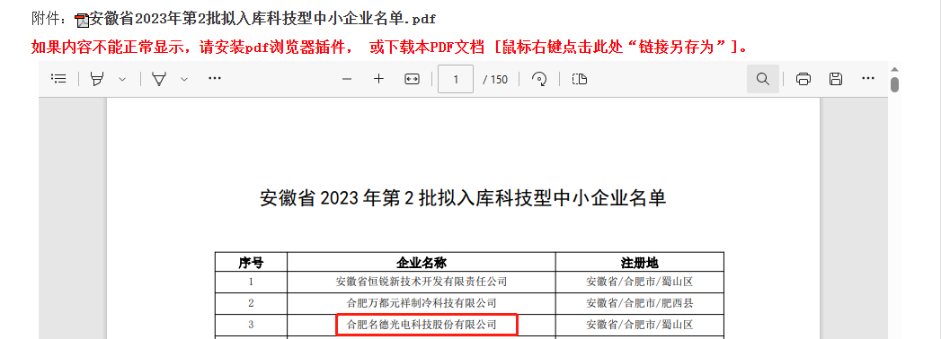近日,安徽省科學(xué)技技廳公布了2023年第二批入庫科技型中小企業(yè)名單,合肥名德光電科技股份有限公司與安徽名德智能科技有限公司分別上榜。
