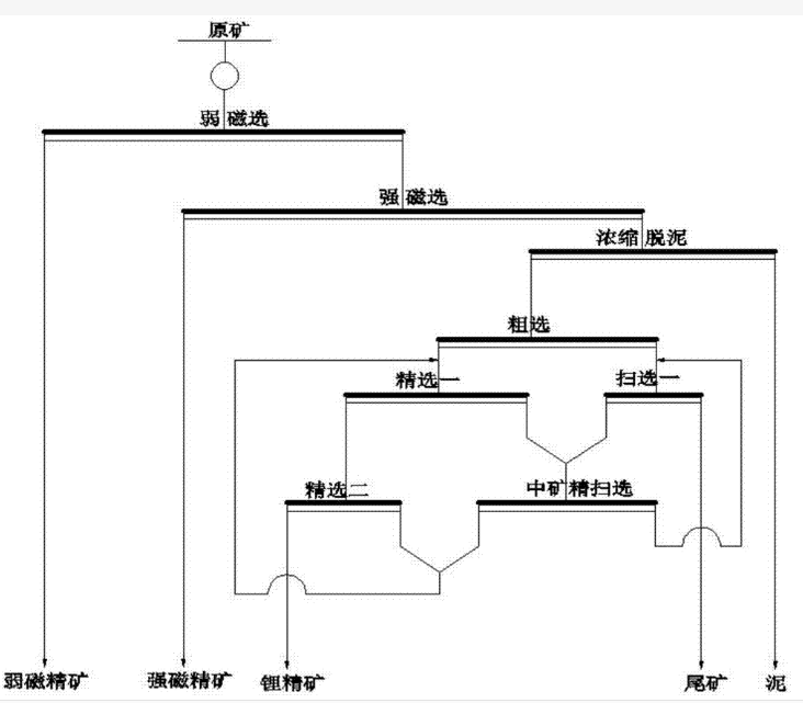 主要工藝:自然界中的伴生組分復(fù)雜的鋰礦,單一的選礦方法有時很難得到合格的鋰精礦,這種情況下選用聯(lián)合工藝進行鋰礦選別,如:浮選-磁選工藝、浮選-重選-磁選工藝、浮選-化學(xué)處理工藝等。