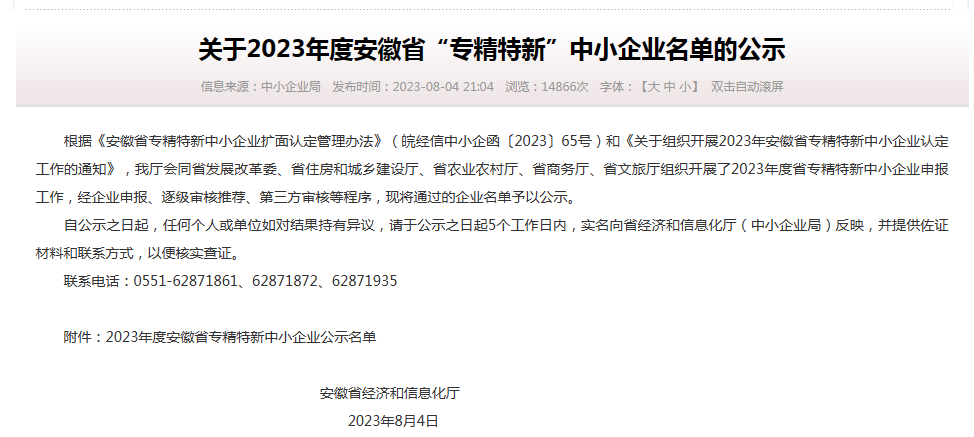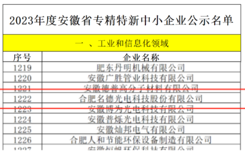 8月4日,安徽省經(jīng)濟和信息化廳會同省發(fā)展改革委、省住房和城鄉(xiāng)建設廳、省農(nóng)業(yè)農(nóng)村廳、省商務廳、省文旅廳組織開展了2023年度省專精特新中小企業(yè)申報工作,公示了入選“2023年度安徽省專精特新企業(yè)名單”,合肥名德光電憑借技術創(chuàng)新實力和市場影響力成功入選,獲評認定為安徽省專精特新企業(yè)。