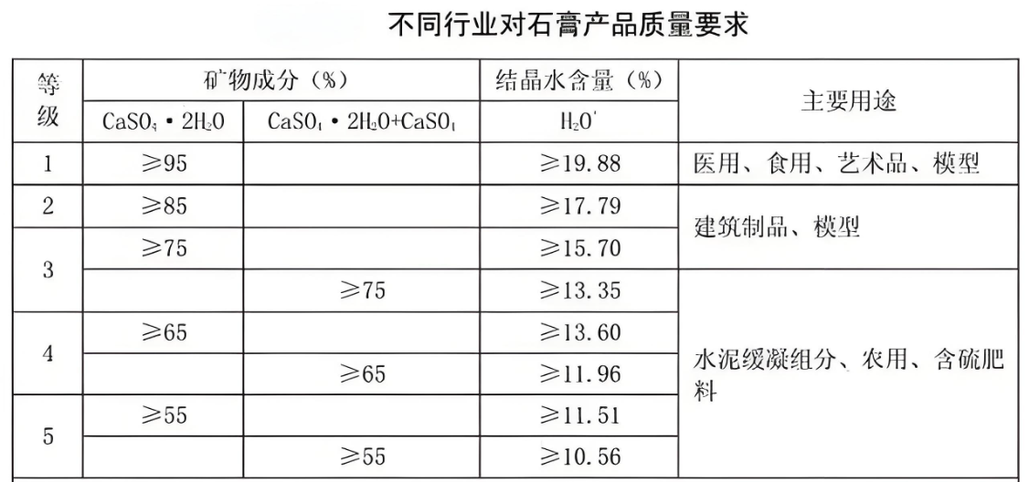 5)工業(yè)應(yīng)用:石膏在橡膠、塑料行業(yè)中作為填料使用;在肥料、農(nóng)藥中作為載體和改良劑;在油漆和紡織品生產(chǎn)中作為添加劑;在食品工業(yè)中作為穩(wěn)定劑和成型劑;在醫(yī)藥行業(yè)中作為藥片粘合劑和填充劑;在日用化工、工藝美術(shù)、文教用品等領(lǐng)域也有廣泛應(yīng)用。