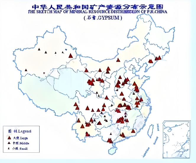 優(yōu)質(zhì)石膏資源主要集中在湖北應(yīng)城、荊門,湖南衡山,廣東三水、四會,山東蒼山、棗莊以及山西平陸等地。
