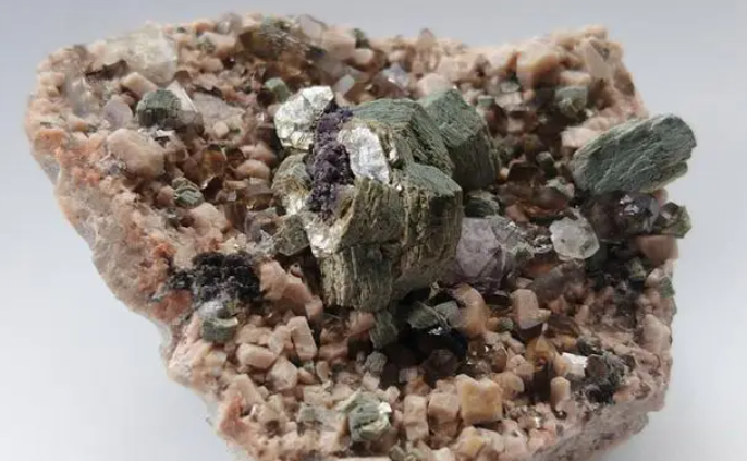 而沉積型螢石中的碳酸鹽型螢石,螢石呈細(xì)粒狀分布于石灰?guī)r、大理巖中,與方解石或白云石組成粒狀共結(jié)鑲嵌結(jié)構(gòu)或變晶結(jié)構(gòu)。沉積型螢石礦床的礦物成分相對(duì)復(fù)雜,可能包含多種雜質(zhì)和伴生礦物,因此在工業(yè)應(yīng)用前需要進(jìn)行更復(fù)雜的選礦和提純過(guò)程。