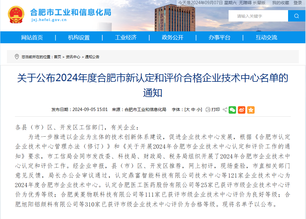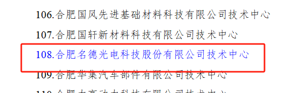 名德光電榮膺為合肥市企業(yè)技術(shù)名單