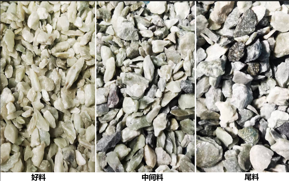 在介紹過整個(gè)廠區(qū)和產(chǎn)品后,帶著他們一行人來到我們名德人工智能分選機(jī)旁,并針對他們帶來的三種顆粒大小的滑石,現(xiàn)場開袋分選。