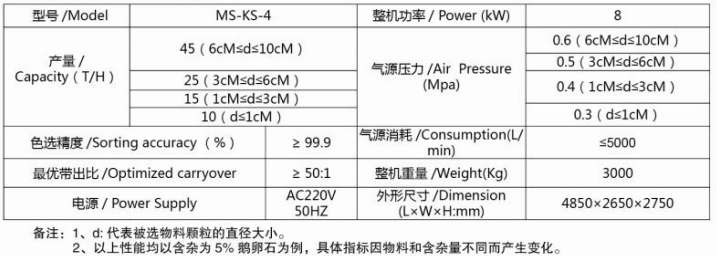 3、高精度全彩面陣 CCD 傳感器技術(shù),可檢測(cè)出0.02mm"左右的細(xì)微色差;根據(jù)礦石的不同特性,使用不同的處理方法,保證了礦石等被選物料的精確識(shí)別。4、裝置產(chǎn)量高,精度高,部分機(jī)型產(chǎn)量已突破40噸/小時(shí),是國(guó)內(nèi)同類廠家的4-5倍,適合大中型礦業(yè)企業(yè)對(duì)選礦高產(chǎn)量和高精度的要求。